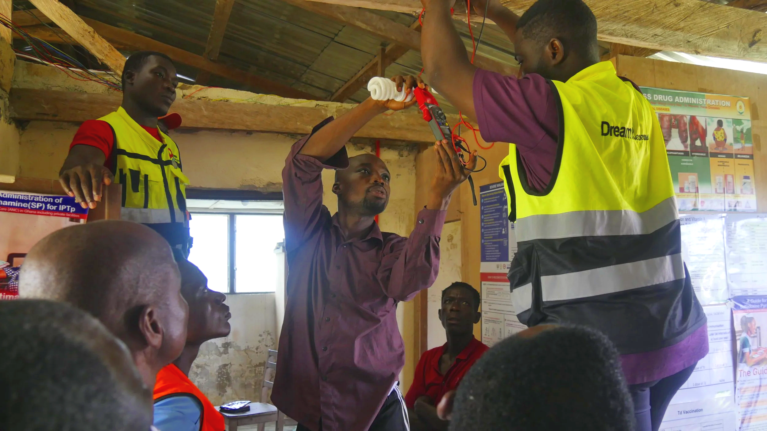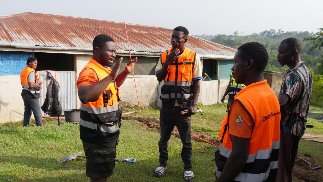 Dream Renewables team wiring the Moframfadwene CHPS compound