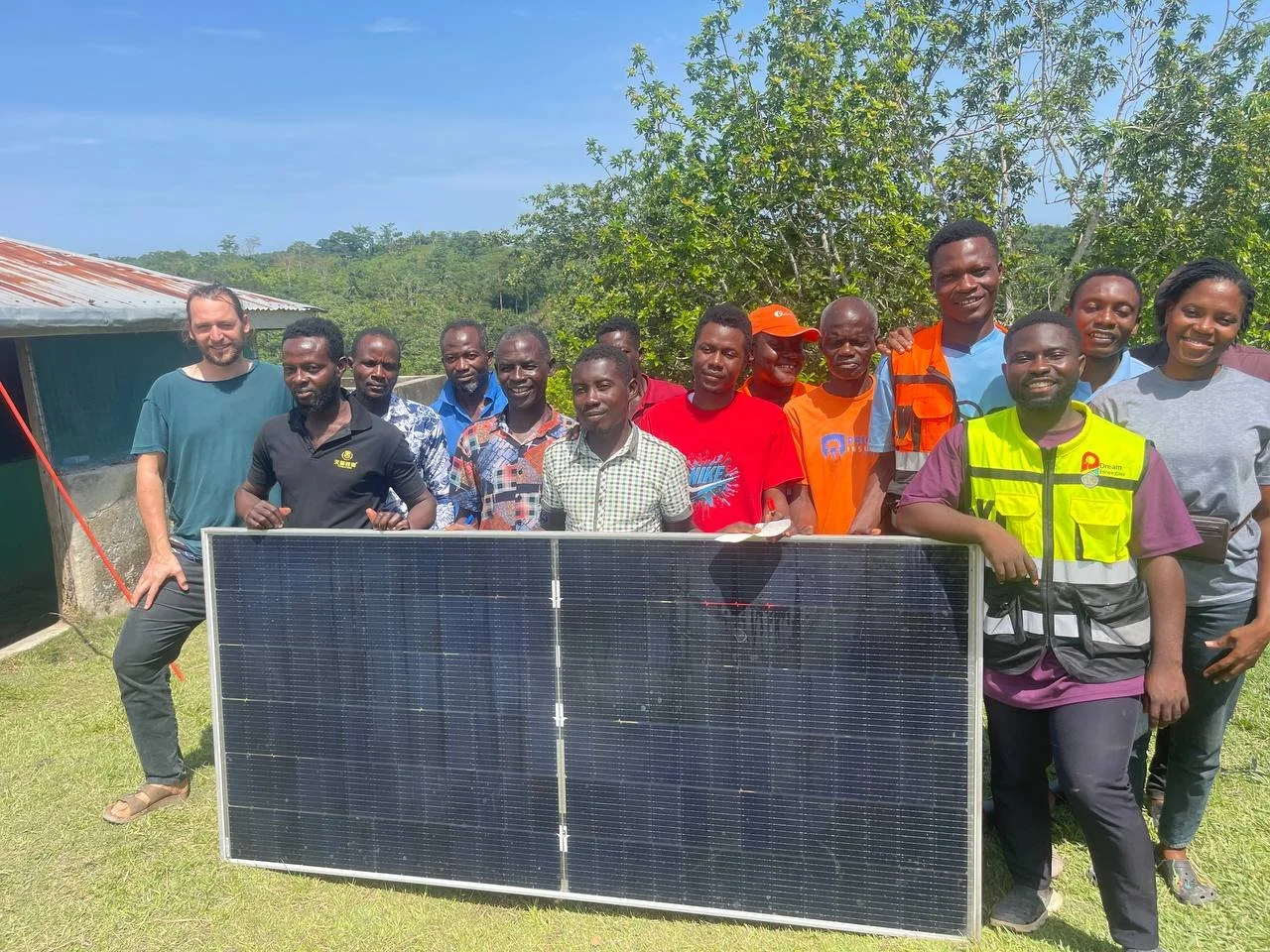 Dream Renewables team with trainees after the installation at Moframfadwene CHPS Compound